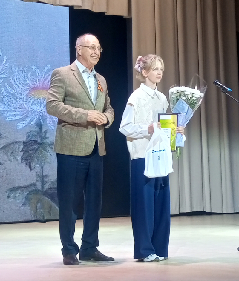 Следующим шагом стал вечер- чествование наших земляков «Город славен людьми». Уже традиционно в этот день Ельню посетил заслуженный экономист РФ, профессор, доктор экономических наук Святослав Анатольевич Масютин. Он вручил именную стипендию нашей юной «звездочке» – учащейся художественного отделения детской музыкальной школы Виктории Косенко.